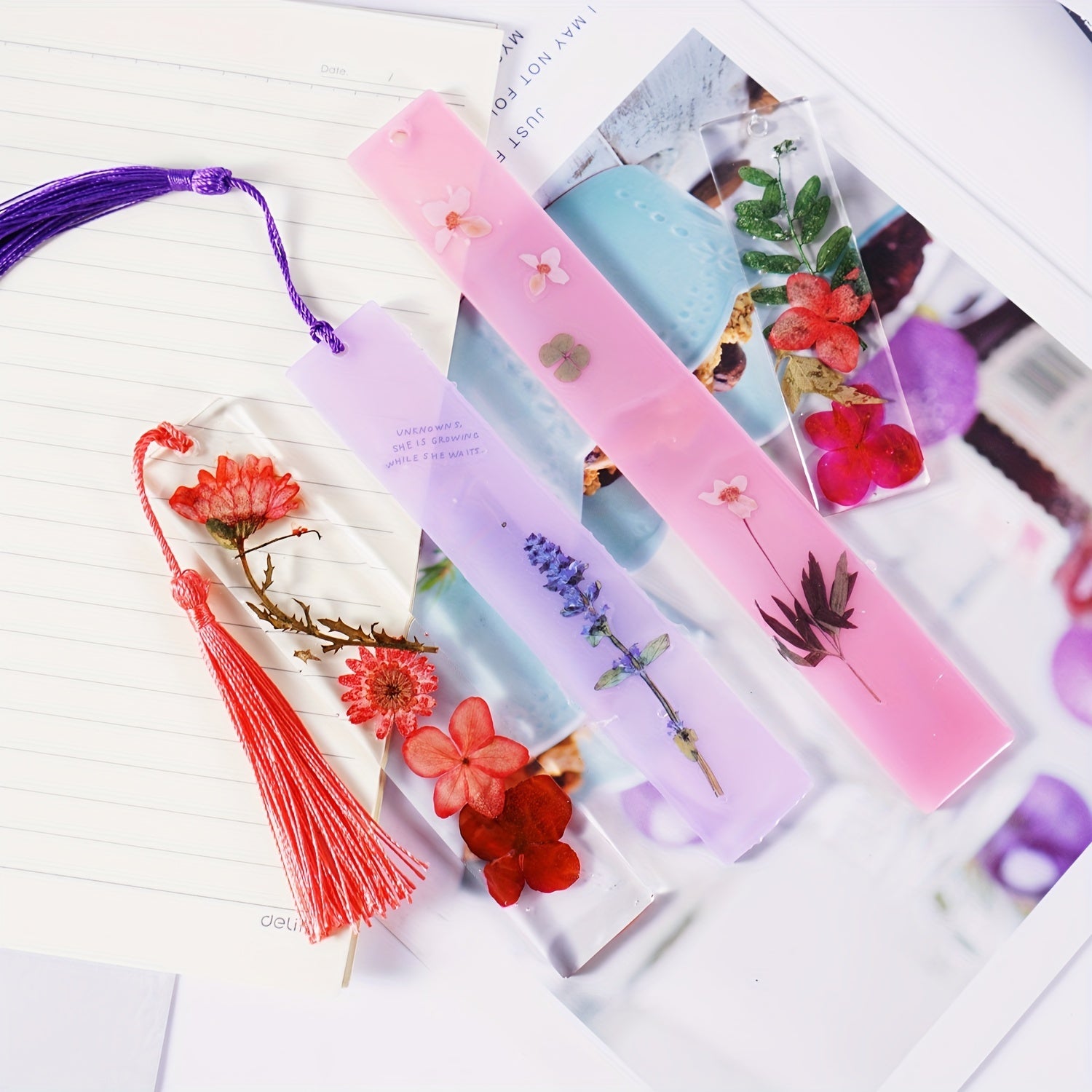 3-Size DIY Silicone Bookmark Molds for Resin Crafts - Reusable L/M/S Rectangle Molds with Floral, Glitter & Star Designs, Perfect for Keychains, Home Decor & Gift Making, Silicone Molds for Resin, Decorative Keychains, Tassel